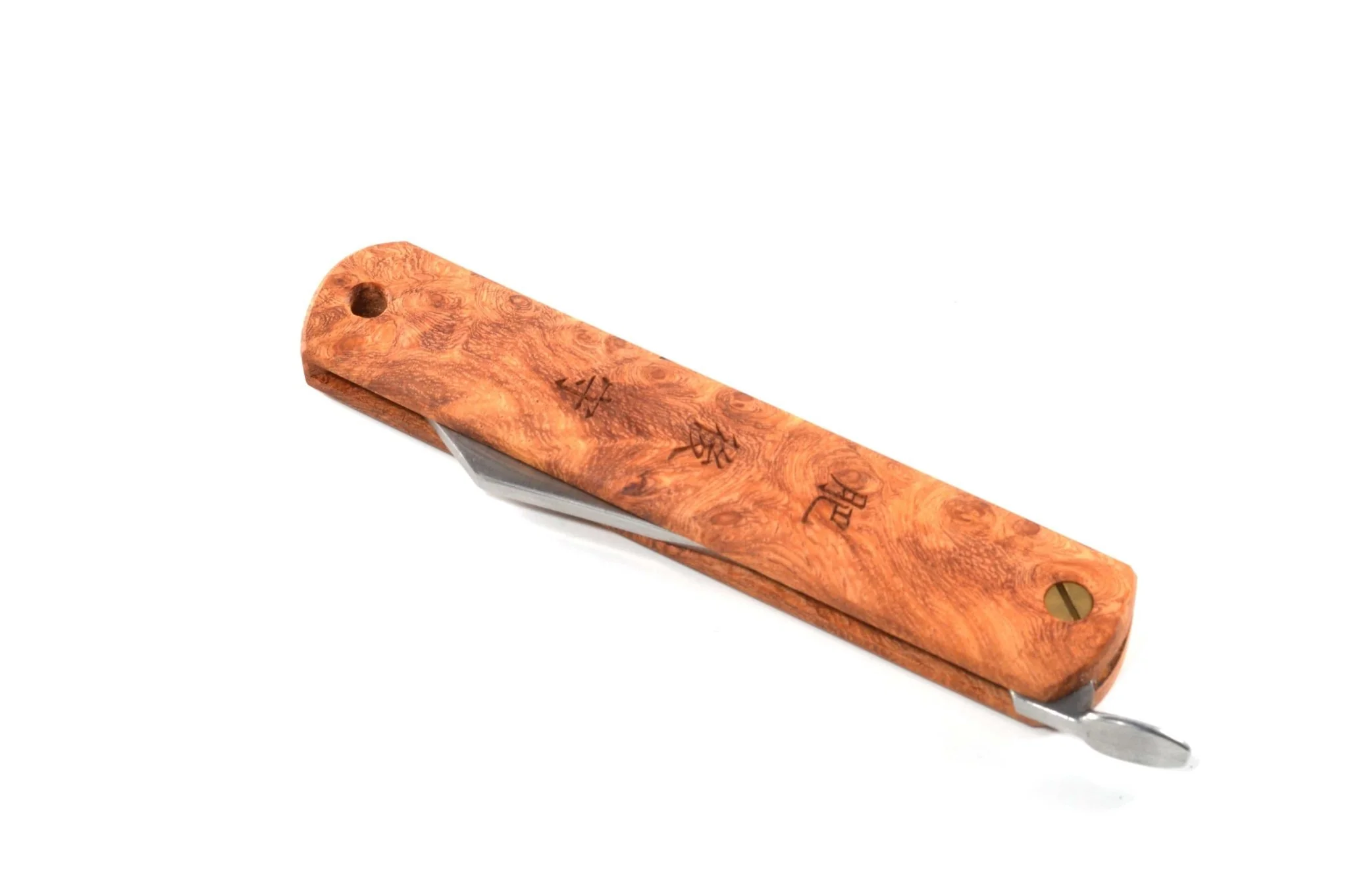 This Higonokami stands out with its beautiful padauk wood handle — a refined twist on a classic design. Unlike many traditional Higonokami knives, this model has evolved to offer more than just timeless aesthetics.