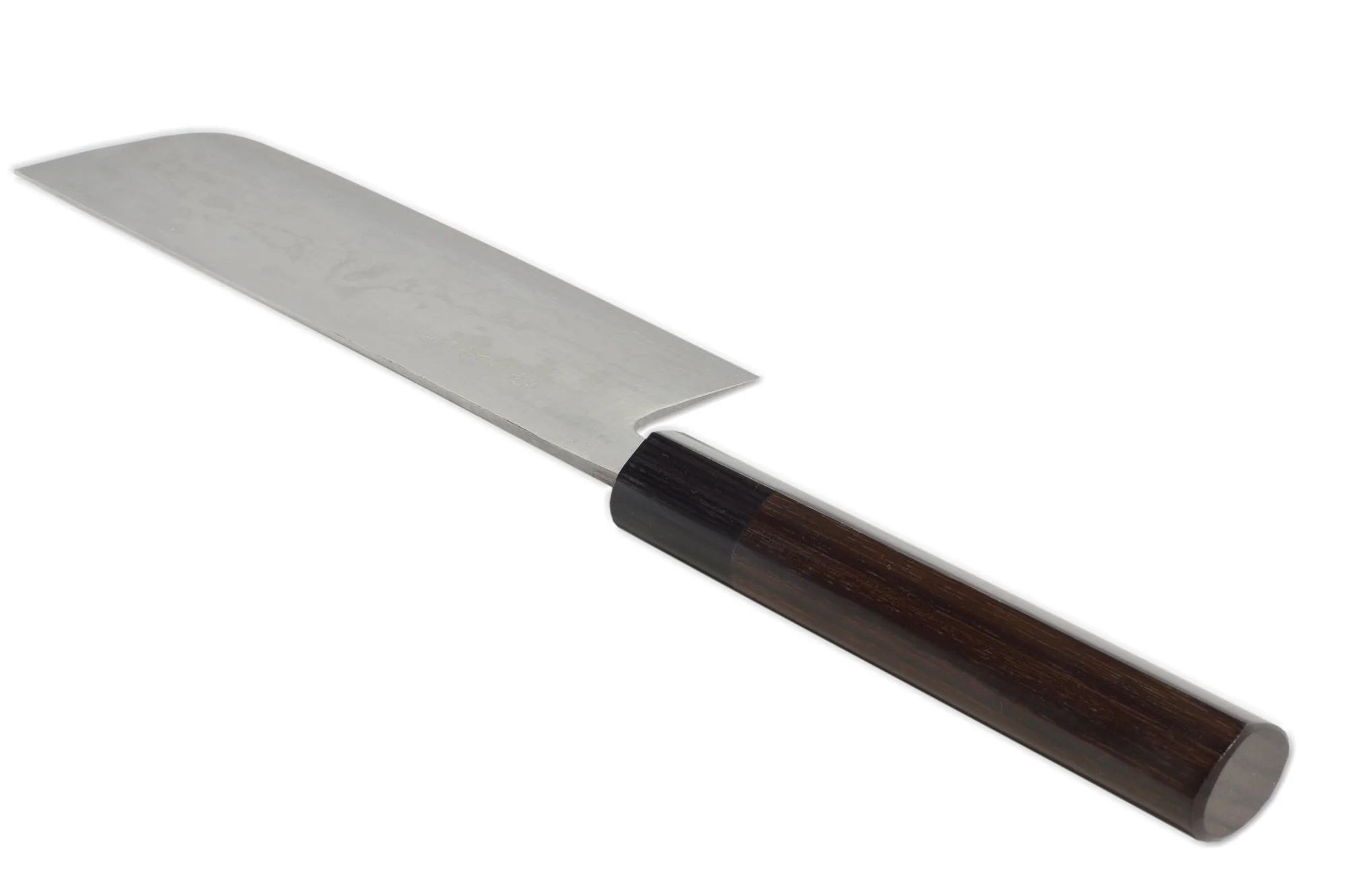 Nakiri knives are highly known for their long and flat blade. They tend to be fabricated with a higher heel compared to other models and are extremely popular for chopping vegetables. They are the ideal candidate for cutting long veggies in a single chop, but also great for a push or pull cut into harder vegetables. The square shape allows you to easily grip your fingers around the handle with no fear of busting your knuckles when chopping your vegetables.