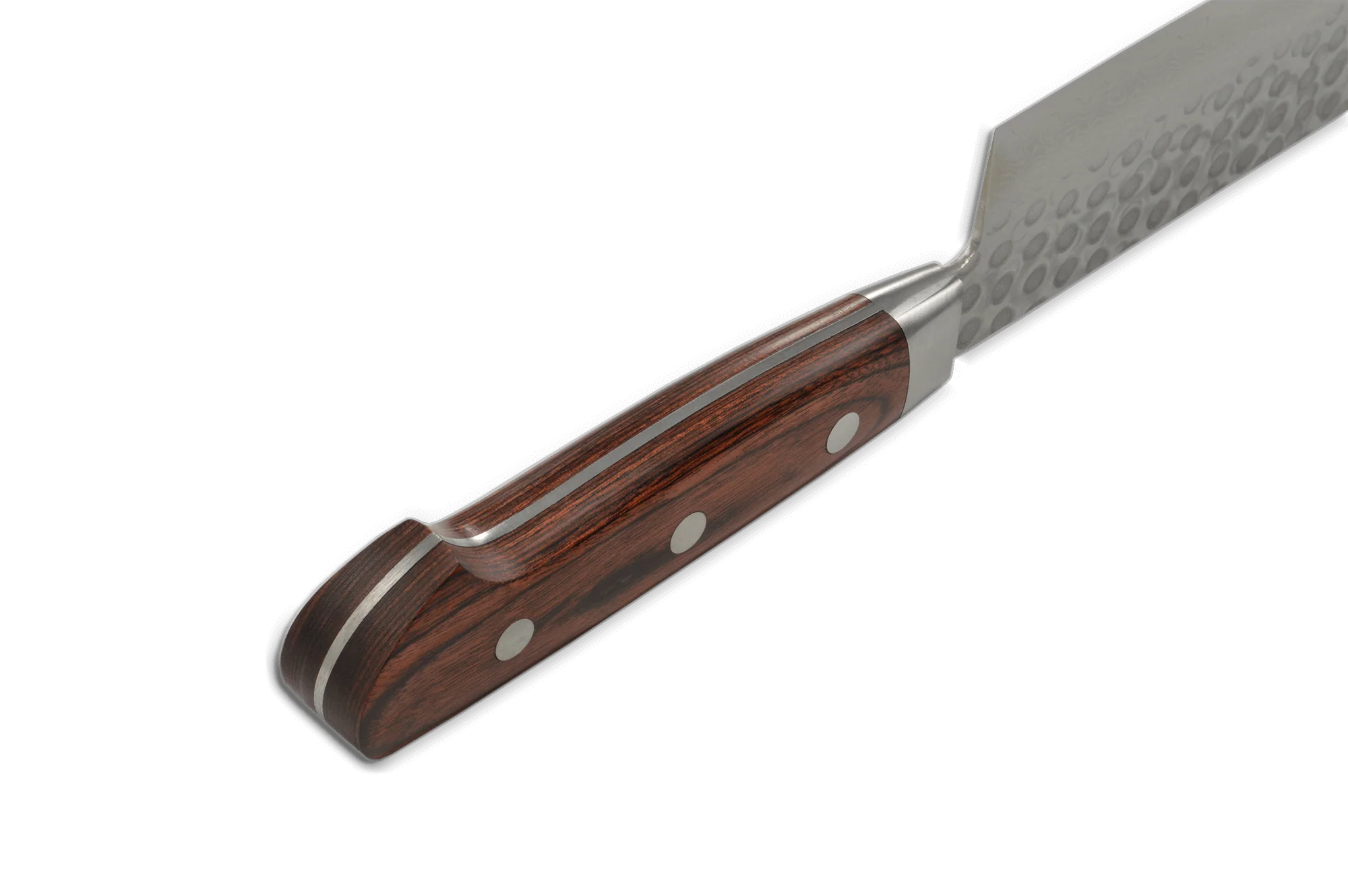 Nakiri knives are highly known for their long and flat blade. They tend to be fabricated with a higher heel compared to other models and are extremely popular for chopping vegetables. They are the ideal candidate for cutting long veggies in a single chop, but also great for a push or pull cut into harder vegetables. The square shape allows you to easily grip your fingers around the handle with no fear of busting your knuckles when chopping your vegetables.